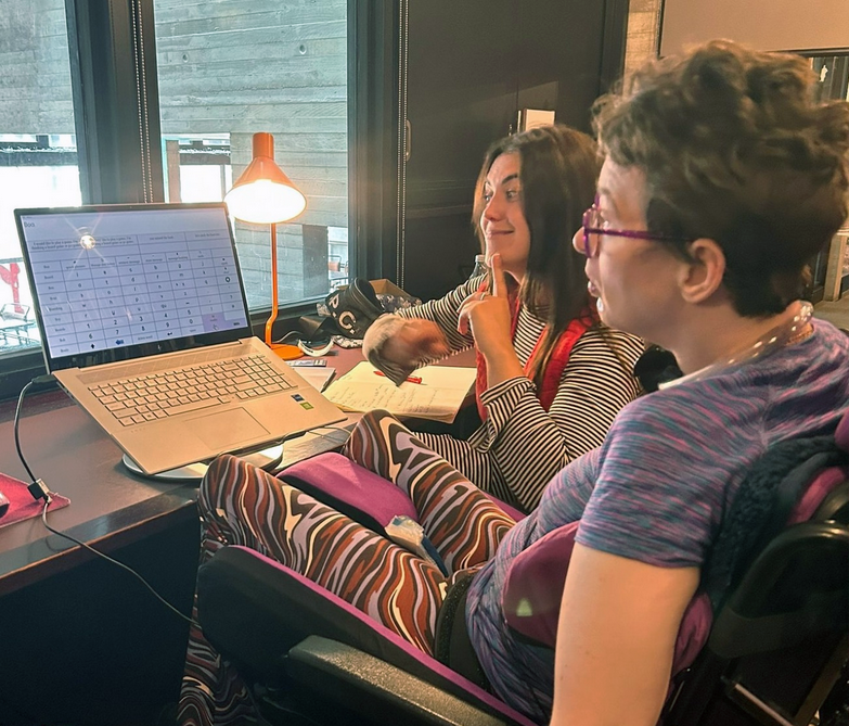 My directing journey begun when I was given the opportunity to direct 2 scenes, which I wrote as part of my Arts Council sponsored project. The scenes were performed by Hayley Sheen, a local actress/singer (who recently made her West End debut), and Andrew Sinclair, a director/actor. I also directed the music video for the first original song I wrote “Everybody’s BITCHIN’ about AL”, which also featured Hayley alongside local performing arts students. I designed a directing toolkit (which was developed and created through a collaboration with RAWD) in order to direct effectively and efficiently like my able-bodied peers without needing to speak or use my computers, which would be too time-consuming.